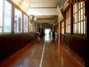 昔懐かしい学校の木造廊下です。壁には卒業生の作品や校訓など小学校時代の思い出がちらほら…。 |